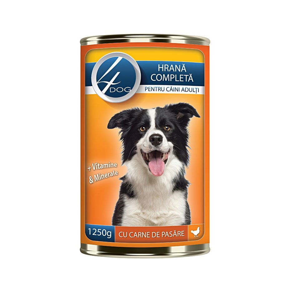 Hrana umeda caini, 4Dog, conserva 1.25 kg, toate taliile, adult, carne de pui