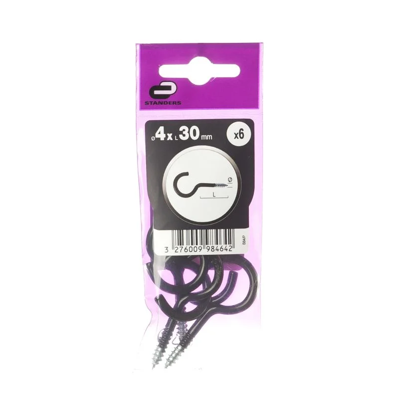 Fabricat din oțel rezistent, cu finisaj negru, șurubul asigură durabilitate și un aspect discret, potrivit pentru utilizări vizibile. Dimensiunea 4 x 30 mm permite o fixare fermă, iar inelul deschis facilitează prinderea rapidă a cablurilor, lanțurilor, sforilor sau altor accesorii ușoare.